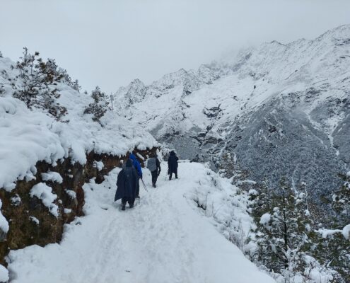These are items are not included in the trek cost – Laundry, mineral water bottles, electronic equipment charging, additional food purchases during the stay (packet food), and additional gear purchases in Kathmandu & Namche.