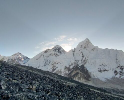 Trekkers receive a climbing dry-fit t-shirt upon reaching base camp, a buff for summiting either Mt. Nangkarshang or Kalapatthar, and a summit certificate upon returning. Those who show outstanding performance may also earn an Everest Base Camp Trekker’s Badge.