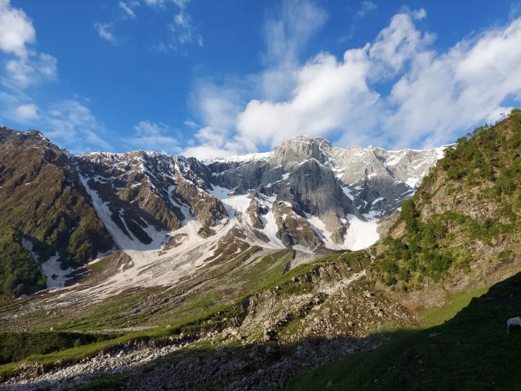 Mt. Shetidhar, also called “White Peak,” is perfect for first-time mountaineers. It offers stunning views of Hanuman Tibba to the west and Deo Tibba, Indrasan, and smaller Dhauladhar and Pir Panjal peaks to the east. Its south face provides a challenging yet straightforward route, making Shetidhar more accessible than nearby peaks.