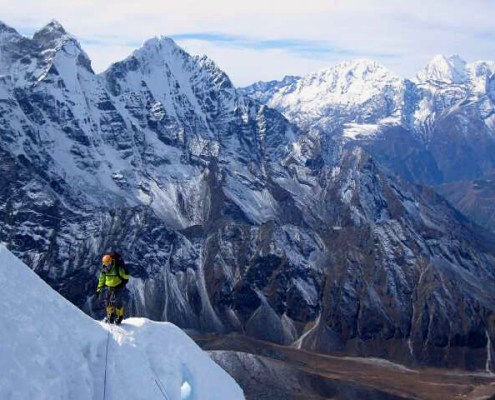 Summit day is long, committing, and unforgiving — requiring absolute focus, strong rope management skills, and the ability to perform under extreme altitude and exposure. Views from the summit include Everest, Lhotse, Makalu, and the entire Khumbu region.