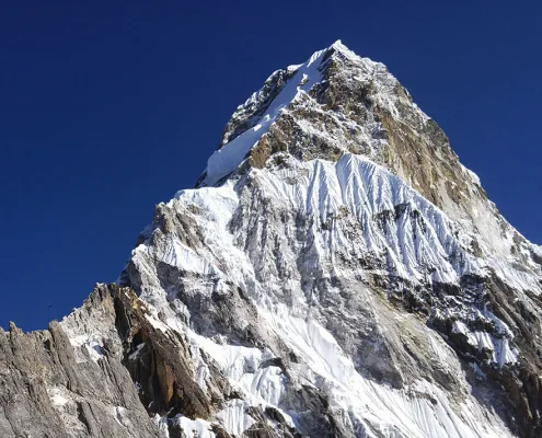 Often called the “Matterhorn of the Himalayas,” Ama Dablam (6,812 m) is one of the most iconic and technically beautiful mountains in the world. Rising sharply above the Khumbu Valley, this peak is a true test of technical mountaineering skill, endurance, and mental control.