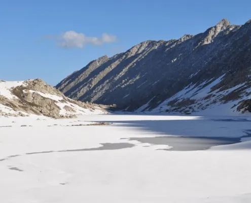 The most challenging and rewarding day. Cross the spectacular Indrahar Pass (approx. 4,300M), then descend towards the serene Nag Dal lake. Experience panoramic views of the Kangra and Chamba valleys.