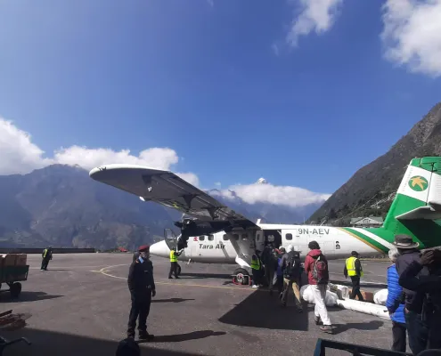 Early morning scenic mountain flight to Lukla (30–35 minutes), offering breathtaking Himalayan views.