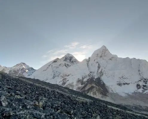 The trail winds through Sherpa villages, suspension bridges over roaring rivers, and deep valleys carved by glaciers. As altitude increases, forests give way to stark, rocky terrain, and the scale of the mountains becomes overwhelming. Peaks like Ama Dablam, Lhotse, Nuptse, and Everest dominate the skyline, constantly reminding you of where you are.