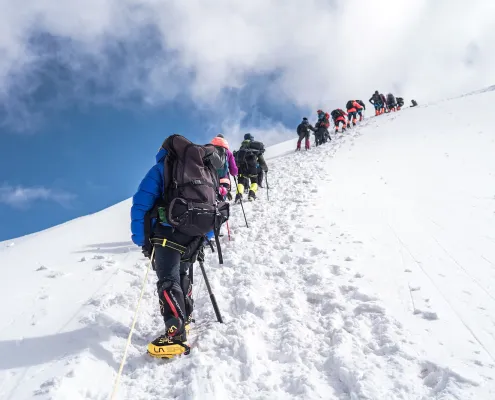 Daily trekking/climbing hours can vary from 5 to 8+ hours depending on terrain and weather.