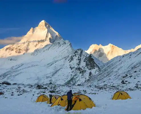 Today is a relatively easy 3-hour trek to Bhojbasa. The trail becomes more barren, with stunning open views of the surrounding peaks. You’ll have time to acclimatize and explore the area, preparing for the more challenging days ahead.