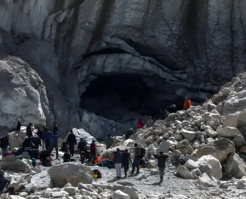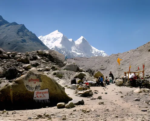 Trek to Gaumukh Glacier, the sacred source of the Ganges, then cross the glacier and ascend to the stunning meadow of Tapovan. This challenging day is rewarded with breathtaking views of Shivling and Meru peaks.