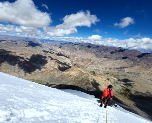 After trekking through the iconic Markha Valley, climbers establish high camps in barren, wind-swept terrain. Summit day involves steep snow slopes, thin air, and prolonged exposure above 6,000 m. The final ascent demands stamina and mental discipline as oxygen levels drop sharply.