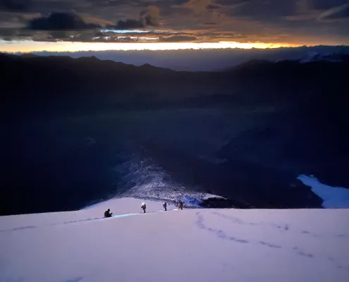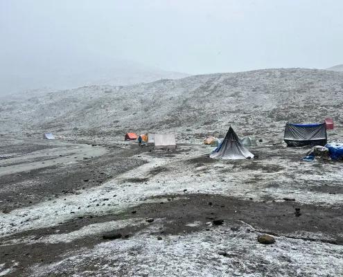 A key preparation day. Learn how to use crampons, ice axe, roping techniques, and ascending on snow. Mentally and physically prepare yourself for the summit push. Hydrate well and stay warm.