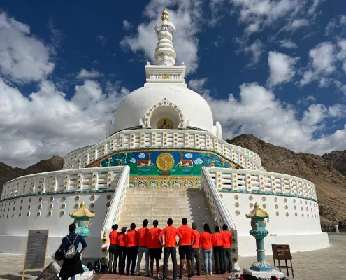After breakfast, go on a light acclimatization hike to Shanti Stupa and surrounding hills. This gentle trek helps your body adjust to altitude while offering panoramic views of Leh, the Indus Valley, and surrounding Himalayan peaks. Return to Leh for lunch and spend the evening at leisure. Overnight stay at a hotel in Leh.