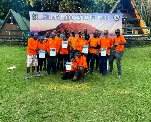 Descend through rainforest. 5–7 hrs. Receive summit certificate. Return to Moshi.