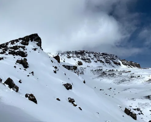 Cross the high-altitude Saddle. 6–8 hrs hike. Rest at Kibo before summit push.