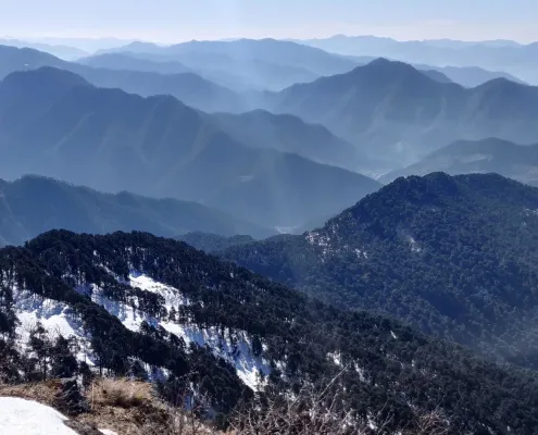 The trail gradually transitions from forested paths into wide alpine meadows and exposed ridgelines. As you climb higher, the views open dramatically, revealing layers of mountains stretching into the distance. The final approach to Mukta Top involves sustained uphill walking, often accompanied by strong winds and cooler temperatures — adding to the sense of being truly high in the mountains.