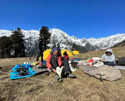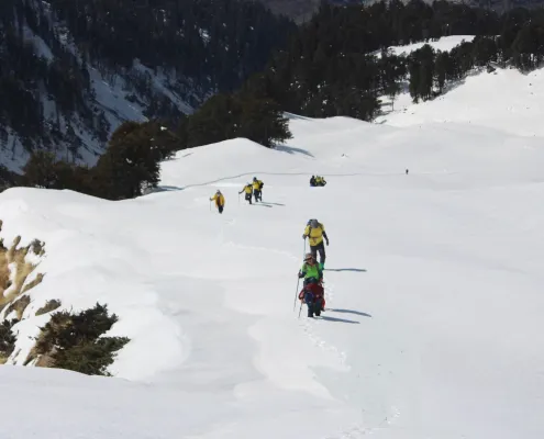 The Patalsu Peak Winter Training Expedition transforms a familiar mountain into a serious snow and cold-weather classroom. At around 4,200 m, Patalsu becomes an intense environment for learning winter skills — snow movement, cold management, and endurance.