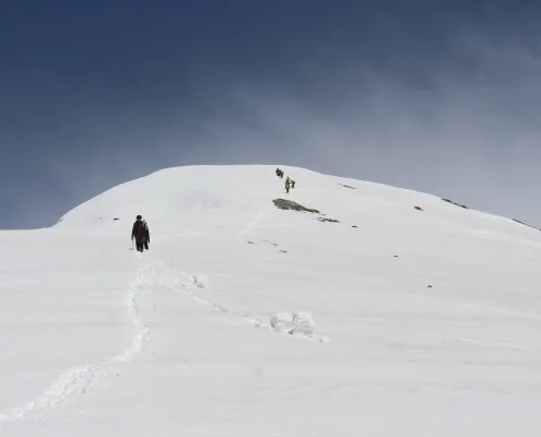 Dedicate this day to snow training, a crucial aspect of winter mountain climbing. Learn the art of climbing up and down on snow-covered slopes, practice self-arrest techniques in case of a fall, and master the skills of roping up for group safety. These fundamental skills are essential for anyone looking to explore the world of winter mountaineering