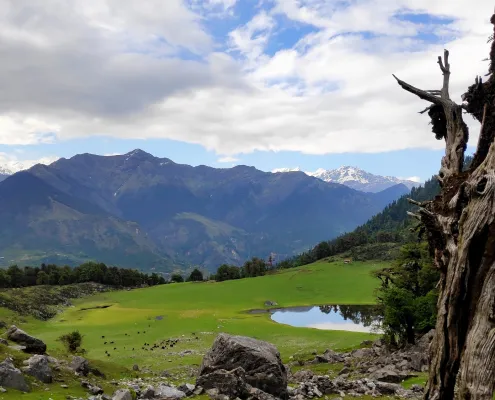 Today is a highlight of the trek. After an early breakfast, set out for a day hike to Panar Bugyal Top (3,100m), one of the most picturesque high-altitude meadows in the region.