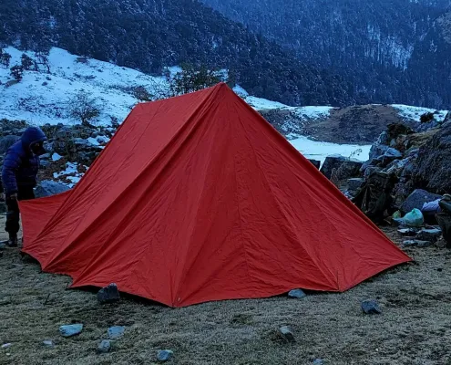 Arrive at B&C Campsite in Chamoli, nestled in the heart of the Garhwal Himalayas. Upon arrival, settle into your campsite and take time to relax after your journey.