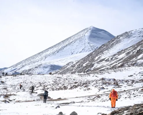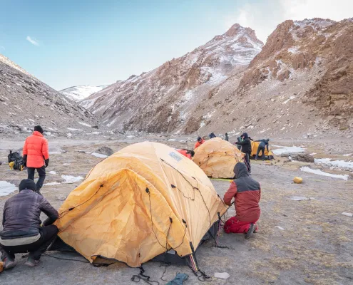 Although the trail to the top of UT Kangri is beautiful, it is also challenging and requires prior experience in high-altitude trekking. The summit day is the longest and most exhausting day of the expedition, lasting around 10-11 hours. Climbers will be roped up in a team and will need to climb steep slopes in deep snow conditions. However, reaching the top of UT Kangri is rewarding as it offers breathtaking views of the surrounding Himalayan ranges such as the Karakoram, Zanskar, and Stok ranges that will be etched in the climbers’ memories forever.